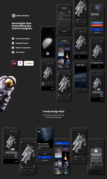 Dark Universe是我们在黑暗模式下的照片编辑应用程序的名称。我们在社交媒体上听到了对该应用程序的想法,因此收到了很多正面评价,因此我们决定创建一个完整的应用程序,但是在黑暗模式下使用一种流行的风格称为Neumorphism。