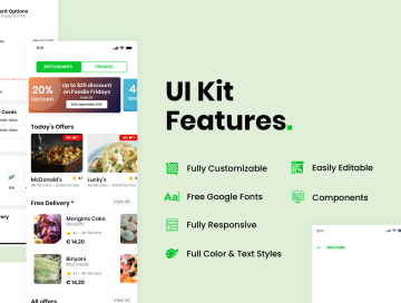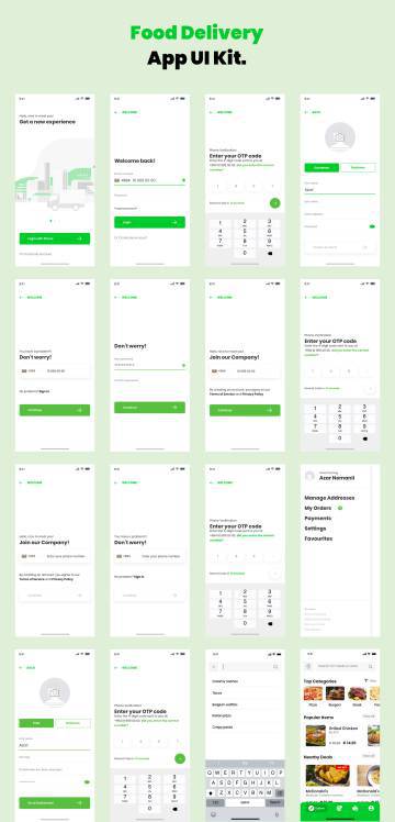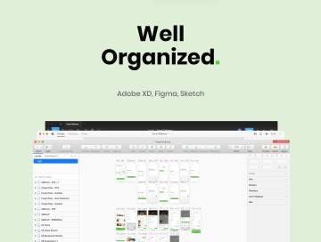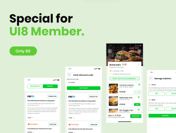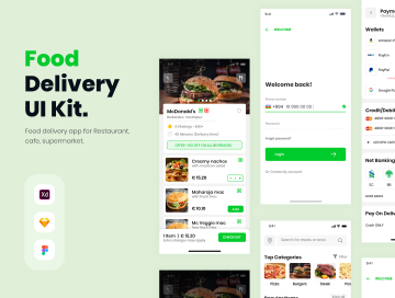 交付应用UI套件,32个精美的应用UI设计屏幕模板可帮助启动企业,设计机构和UI / UX设计师更快地启动您的食品或商店交付应用设计项目,从而在Sketch,Adobe XD和Figma中更轻松地创建专业的交付应用项目。