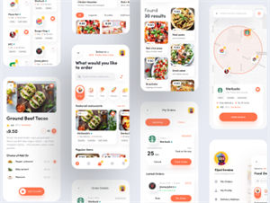 图穷联素材库 » 餐厅饭店食品配送外卖订餐移动APP应用程序UI界面素材 Food Hu
