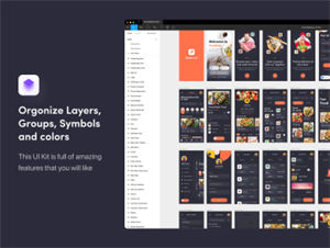 “食品中心”是一个食品配送服务用户界面工具包,由70多个像素完美的设计(带有明暗版本)组成。该套件适用于两种平台。