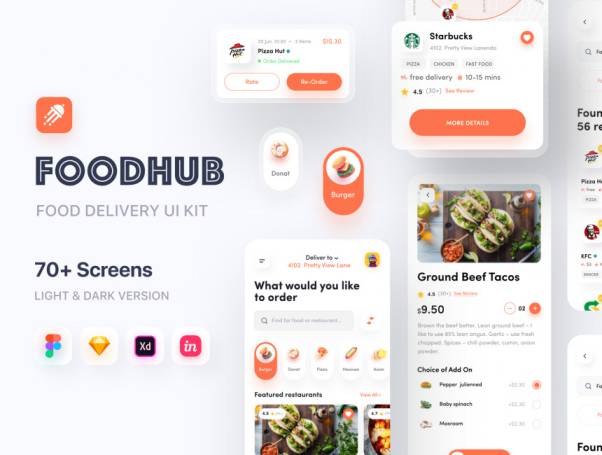 该套件易于定制,包括全局颜色和字体样式。它具有简单的设置和餐厅所需的许多功能。我们为送餐应用程序设计了完整的解决方案。在此UI工具包中,我们考虑了所有内容,因此您不必这样做。