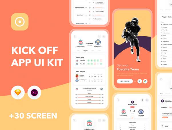 运动体育赛事直播移动APP界面UI素材 Kick off UI Kit