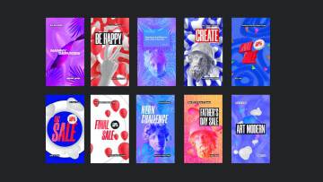 您可以随意尝试包装内的设计,混合不同的背景、视觉元素和颜色来创建您自己的新图片。