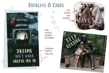 奖金!您还将获得超过50个漩涡,涂鸦元素,边框,形状和流行语-一组小字,例如AND,OF,FOR等。