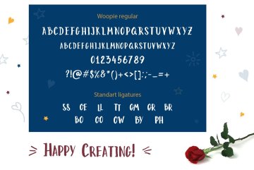 介绍Woopie,一种新的手写字体! 该字体非常适合所有年龄段的可爱,有趣的项目:卡片,印刷品,徽标,结婚请柬,照片叠加层,T恤,案例,海报,布置插图和装饰。