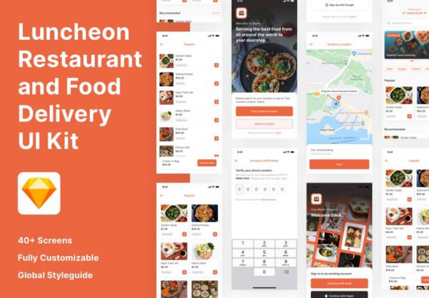 适用于餐厅和外卖应用程序的40个以上屏幕的Sketch UI Kit。易于定制,您可以混合和匹配设计,并根据需要更改样式。