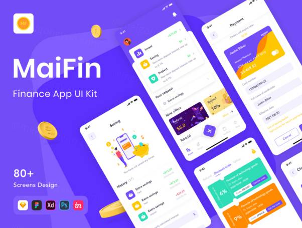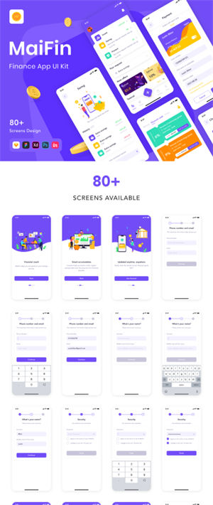图穷联素材库 » 记账簿金融理财随手记业务移动APP界面UI素材 MaiFin - Fi