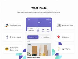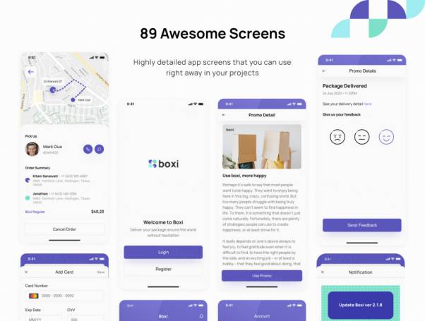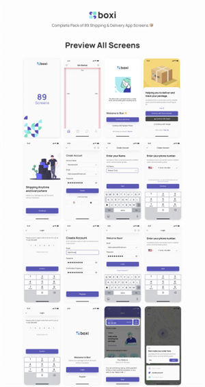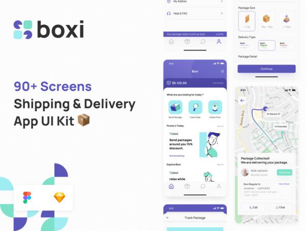 图穷联素材库 » 高质量寄快递服务包裹查询费用支付界面UI素材 Boxi - Ship