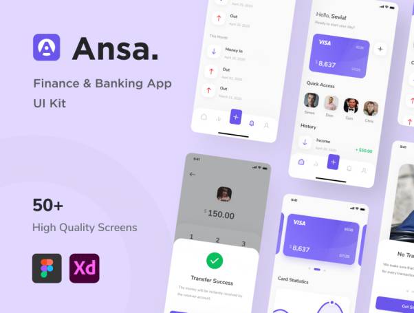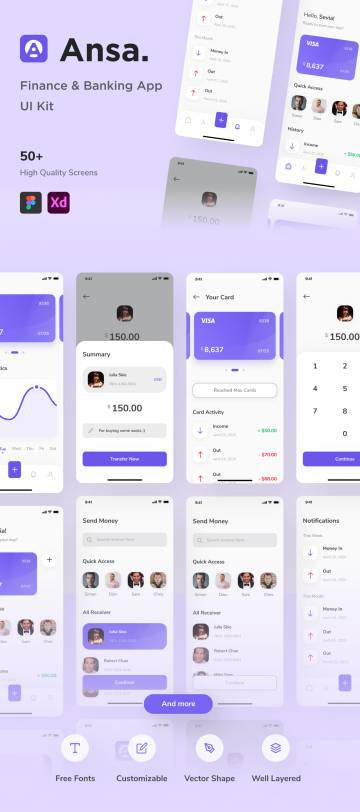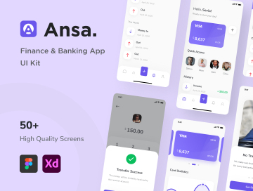 Ansa是一款银行与金融应用程序UI套件,具有简洁时尚的风格,其中包含50多个高质量屏幕和100多个适用于iOS的组件,它们具有可供使用的iPhone X屏幕尺寸(375px X 812px),可以随时用于启动设计过程。