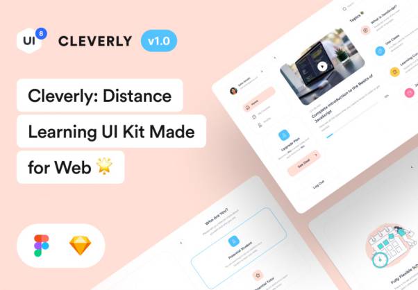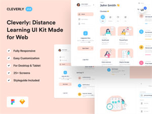 Cleverly是一个远程学习Web UI套件,经过精心设计,可以在台式机和平板电脑设备上运行,其中包括Sketch和Figma的设计文件,以及只需单击几下即可编辑的10多种不同的远程学习插图。