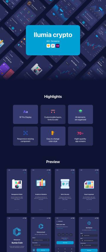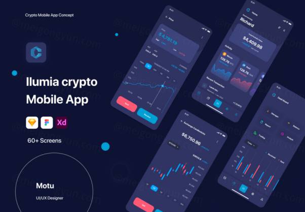 图穷联素材库 » 加密虚拟货币比特币移动APP应用UI界面素材 Ilumia Crypt