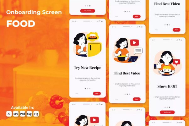 图穷联素材库 » 烹饪和食品配方APP启动页插画(AI,EPS,FIG,PSD,SVG)
