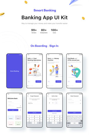 Smart Banking App UI Kit是适用于iOS和Android应用程序的干净且非常详细的UI工具包。您可以使用此应用程序模板来创建银行业务应用程序,管理钱包和预算计划员。