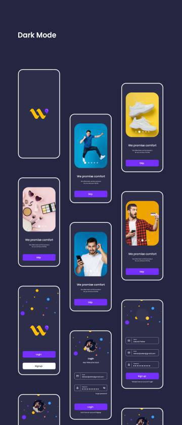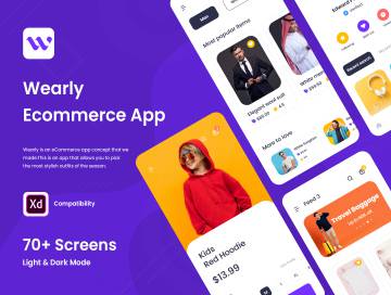 Wearly是我们提出的电子商务应用程序概念。这个应用程式可让您挑选当季最时尚的服装。该应用包含适用于iOS的70多种高质量屏幕,可以使用iPhone X屏幕尺寸(375px X 812px)。
