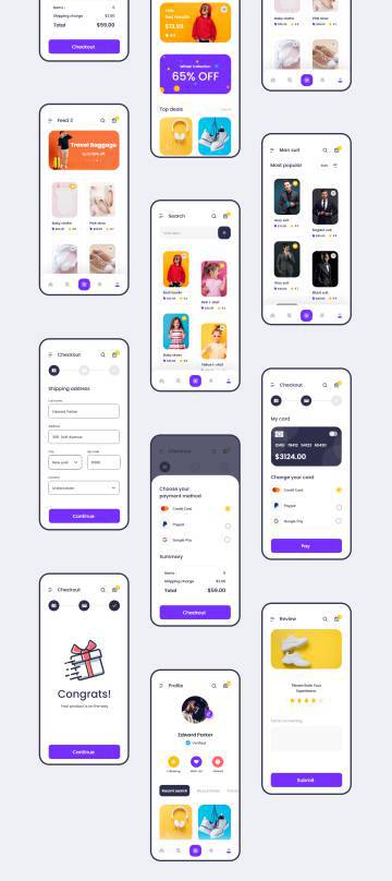 图穷联素材库 » 时尚大牌男女装童装电商销售平台移动APP界面UI素材 Wearly e