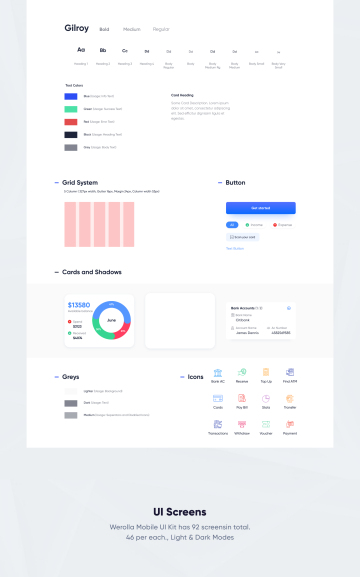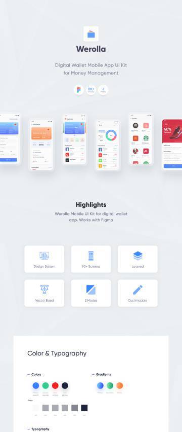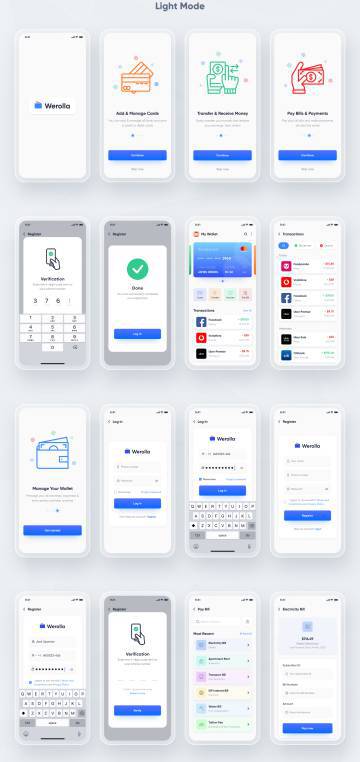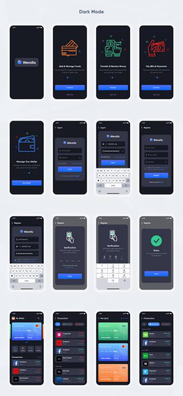 Werolla移动应用程序UI套件是一个数字钱包应用程序,专注于改善通过电话管理资金的体验。该UI套件包含92个UI屏幕。每个主题46个屏幕。暗光模式。与Figma兼容。