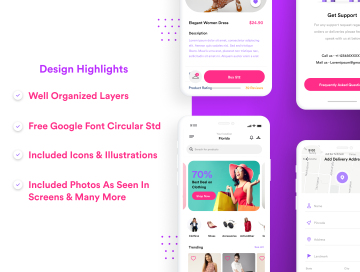 拥有50多个屏幕,井井有条的图层以及可重复使用/可编辑的组件,您可以使用该模板通过其专用的移动应用程序来增强您的电子商务业务,或者只是使用它来加快项目工作流程。