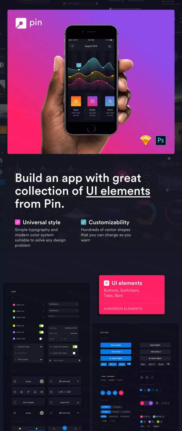 黑色数据统计展示APP UI Kits下载[PSD+Sketch]