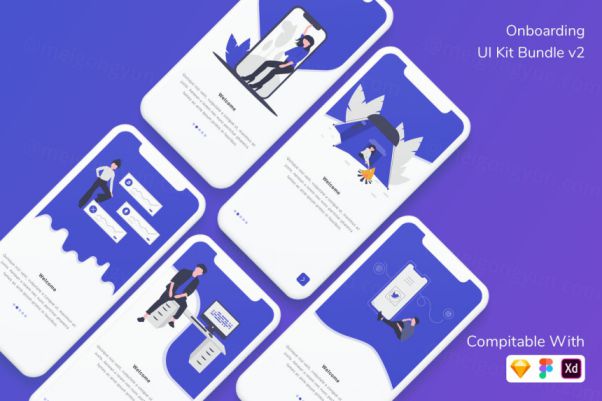 图穷联素材库 » APP应用引导页面启动界面UI设计套件v2 Onboarding UI