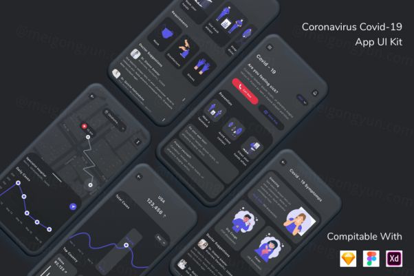 图穷联素材库 » 新冠状病毒主题APP应用设计UI套件 Coronavirus Covi