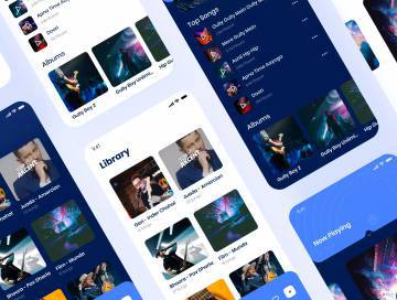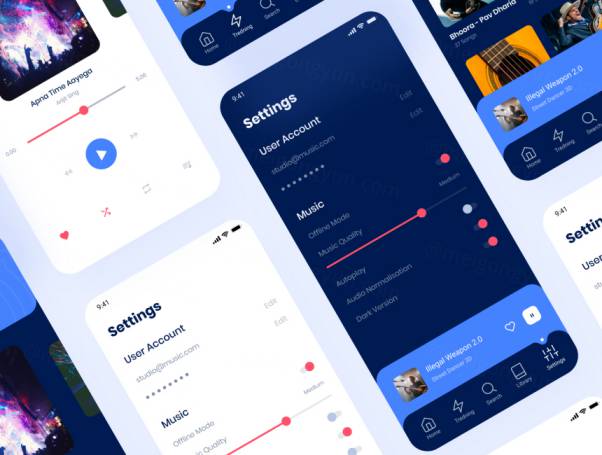 音乐APP应用程序iOS UI套件是基于iOS 11的庞大布局集。音乐是这组布局的主要部分。所有组件均经过精心制作,易于使用Figma进行定制。该套件包含18个屏幕,UI元素,样式和版式。该套件包含两个屏幕尺寸,iPhone X和iPhone 8以及UI套件的明暗版本。