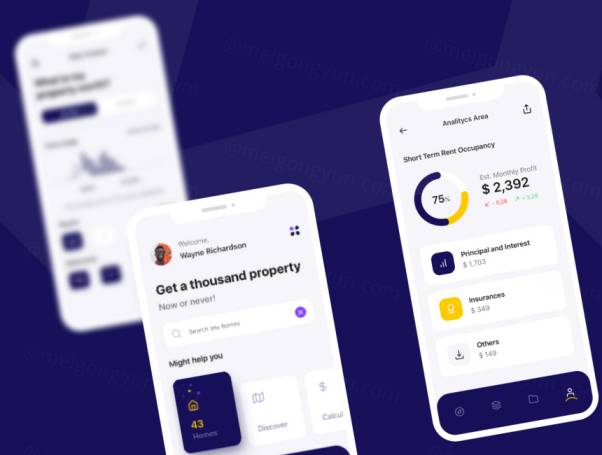 图穷联素材库 » 高级房地产出租/出售APP应用UI套件