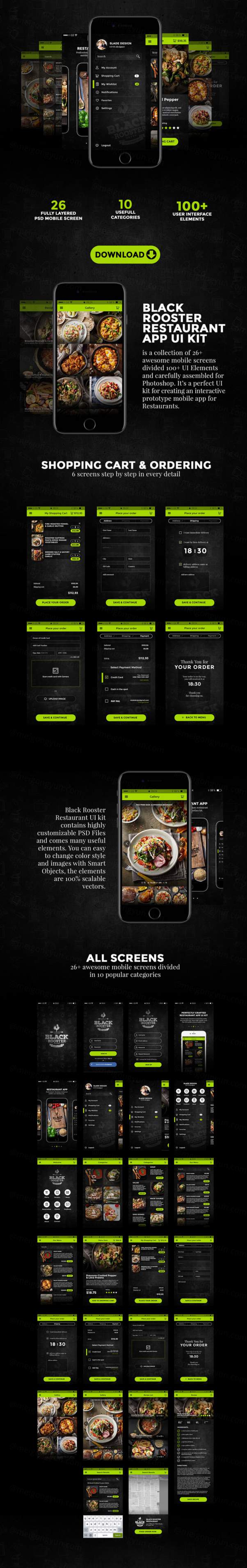 图穷联素材库 » 餐饮类的APP UI Kits下载[PSD,For 点餐O2O]