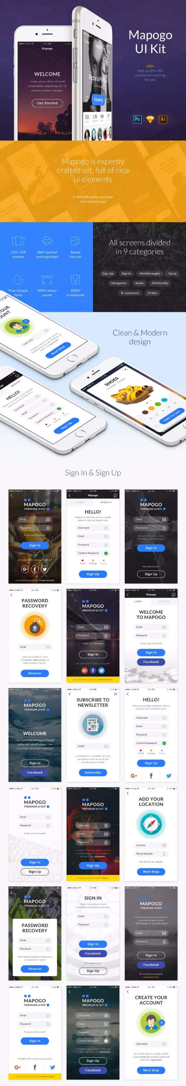 高品质的电商、SNS、媒体全功能APP UI KITS下载[PSD,s