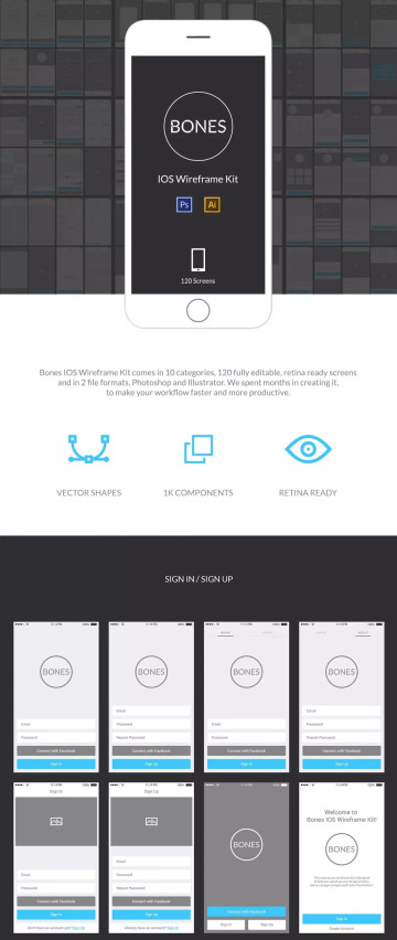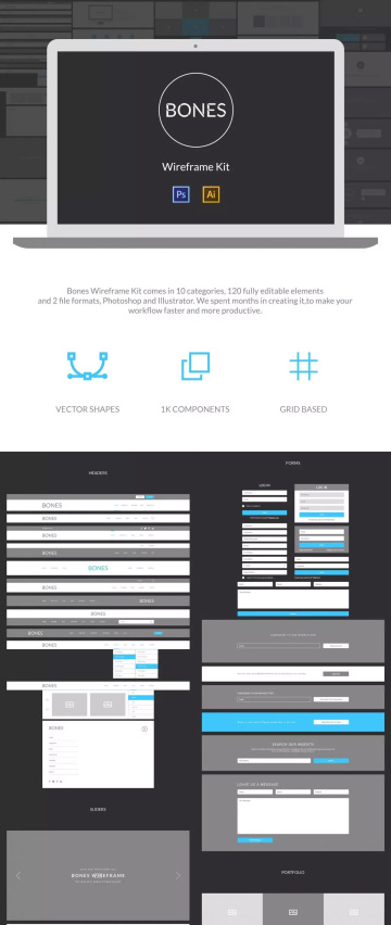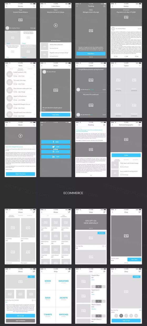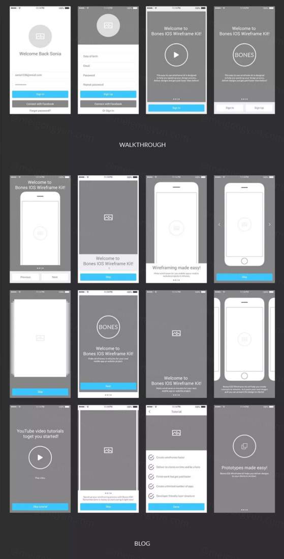 一套完美的线框图(Wireframe Kits)设计资源下载(PSD+