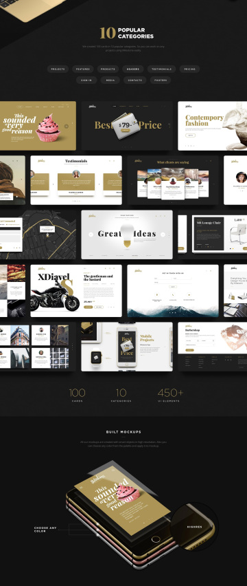 图穷联素材库 » 高品质黑金色的电商服务类WEB UI kit打包下载(500MB,10