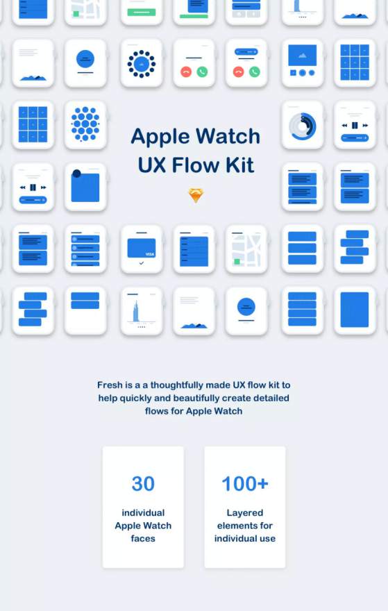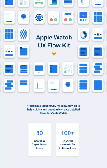这次分享的是,watchOS 体验流程线框图套装下载,这是一套好用的Wireframe Kits,全 Sketch打造,如果你正在设计苹果的Apple watchOS 相关的UI,UX那么这套线框图绝对值得您拥有,
