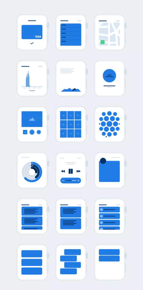图穷联素材库 » watchOS 体验流程线框图套装下载( Wireframe Kits