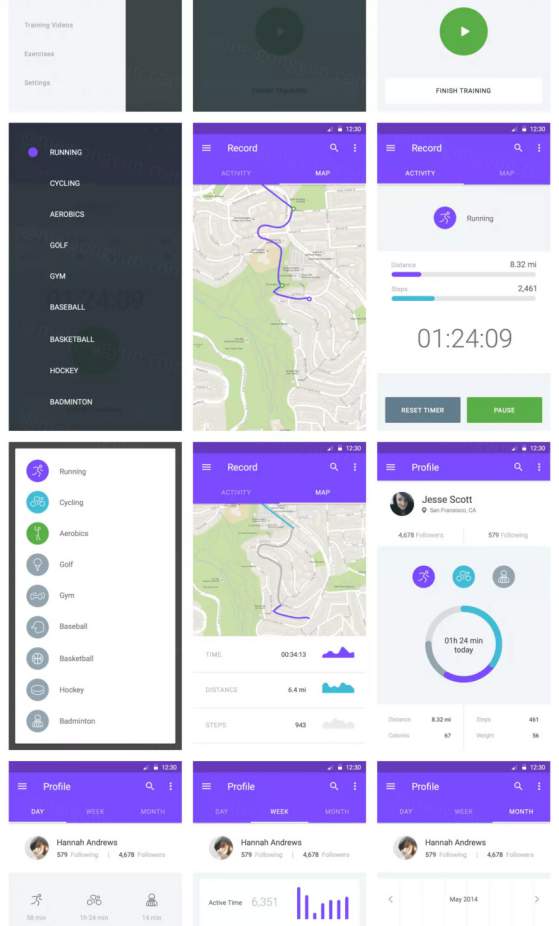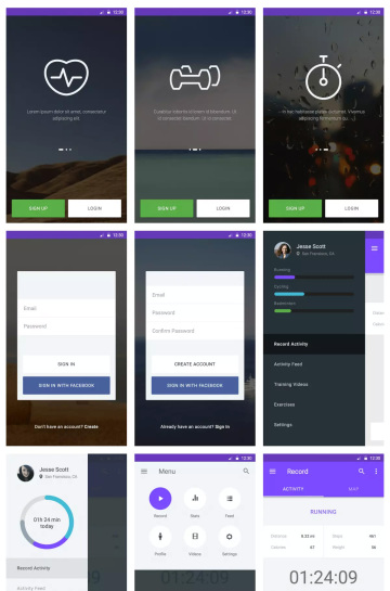 完美的安卓Material UI Kit套装下载[for运动健身,PS