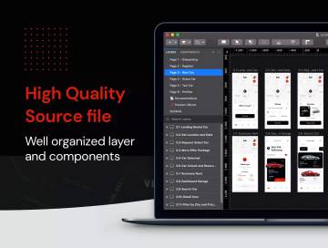 这是高度可定制的且组织良好的汽车租赁、共享和出租车应用程序UI Kit。您可以创建租赁,共享,自行车共享应用程序。该出租车APP模板是专门为满足用户需求而设计的。