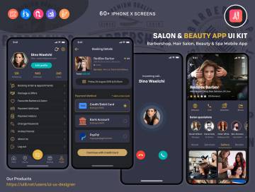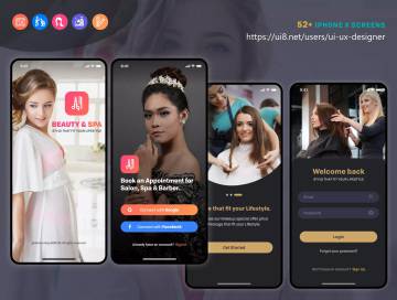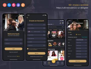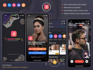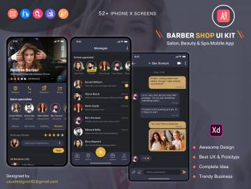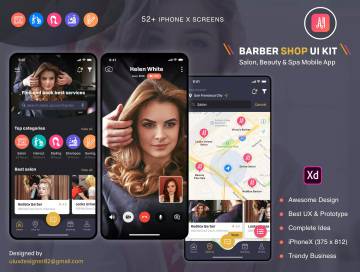 包括52个以上使用Adobe XD设计的高质量iOS屏幕模板。此现代设计模板易于自定义,使您更轻松地设计下一个理发APP应用程序。
