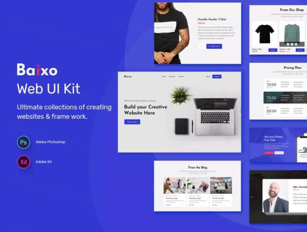 此网站UI设计套件PSD模板采用Photoshop设计,时尚现代的外观。完整设计的Web UI套件。它可以用于各种类型的网站,例如框架,业务网站,原型,应用程序网站等。