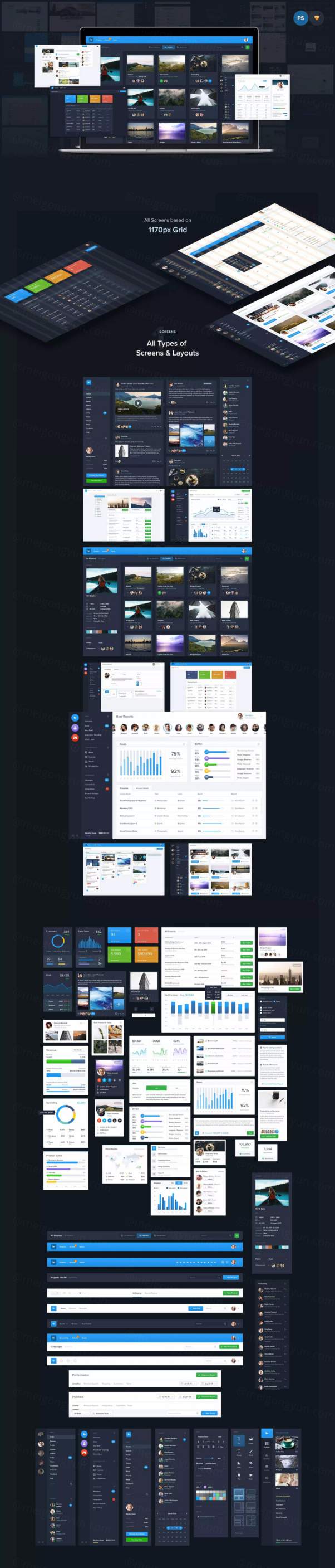 用户后台仪表盘(Dashboard)界面套装专业版【PSD,sketc