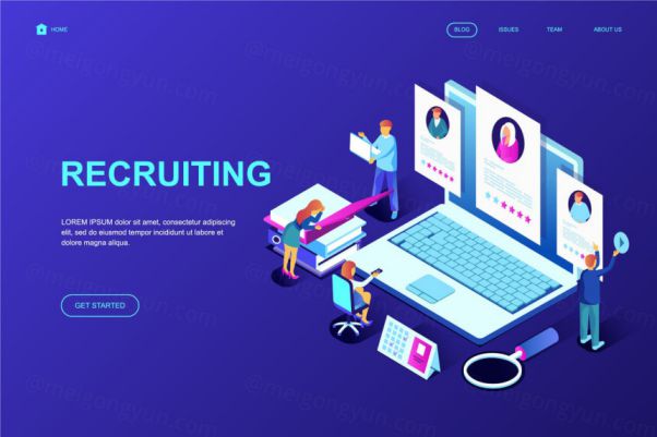 图穷联素材库 » 现代化招聘主题等距概念插画网站着陆页模板 Recruiting Iso