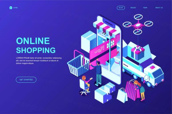 图穷联素材库 » 网上购物主题等距概念插画网站着陆页模板 Online Shopping