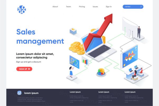 销售管理主题等距概念插画网站着陆页模板 Sales Managemen