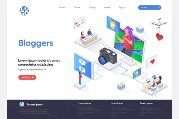 时尚博主主题等距概念插画网站着陆页模板 Bloggers Isomet