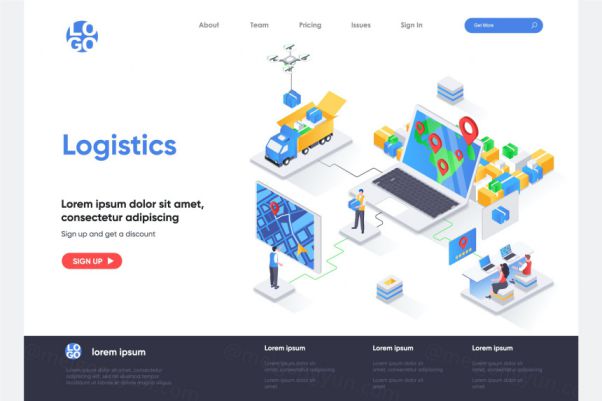 现代物流运输主题等距概念插画网站着陆页模板 Logistics Iso