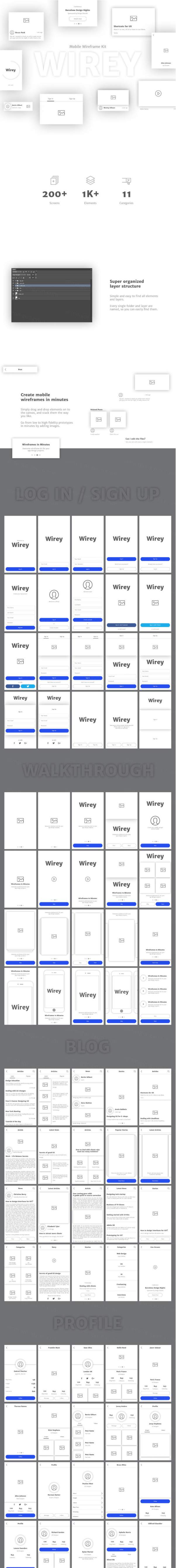 图穷联素材库 » 多功能的APP线框图套装下载(Wireframe Kit)[sketc