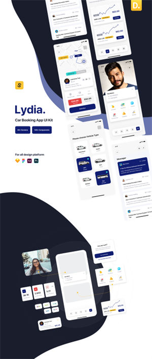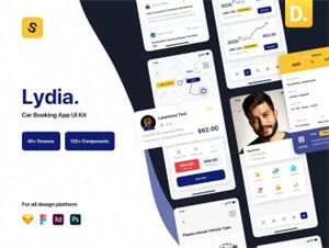 莉迪亚(Lydia)-租车是40多个屏幕的高质量组合,旨在启动您的租车项目并加速您的设计工作流程。该套件与iOS和Android系统100%兼容。精心设计的用户界面与现代设计趋势,清新的色彩和出色的用户体验保持一致。