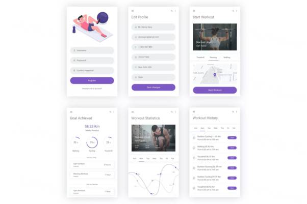 健身和健身APP UI设计模板(AI,PSD,SKETCH,XD,FI