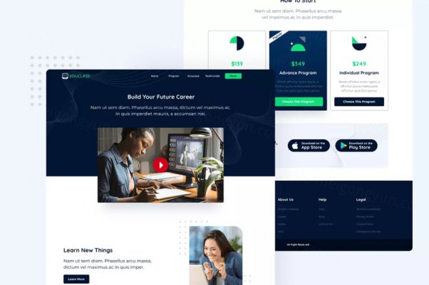 图穷联素材库 » 在线课程网课 – 网页 UI 着陆页模板下载(SKETCH,FIG)