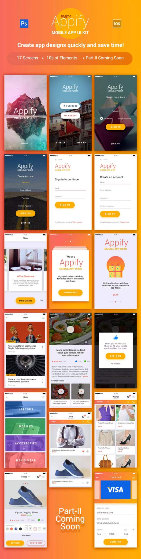 时尚又新鲜的APPIFY MOBILE APP UI KITS套装下载
