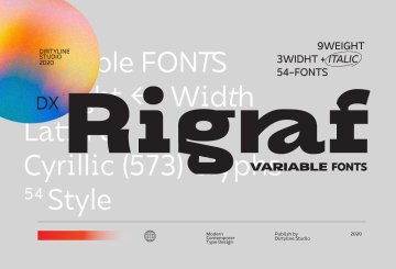 Dx Rigraf 具有优雅的风格、力量和对比,具有涵盖 33 种语言的 577 个字形的扩展拉丁字符集。Dx rigraf 它被设计为一种可变字体,可提供多种选择并获得独特的字体外观,但它还包括九种权重,以便为那些无法使用可变支持软件的人提供同样多的创造力。其独特的特性和许多变量使其成为多功能、时尚的主力,非常适合界面和设计。