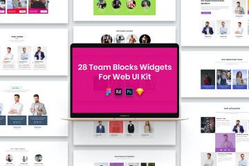 28个用于网站和着陆页面的创业团队/企业团队介绍页面小组件UI设计模板,它包含PSD,Figma,Sketch和Adobe XD文件,并具有组织良好的图层。注意: 所有图像、矢量和样机仅用于预览目的,不包含在下载文件中。