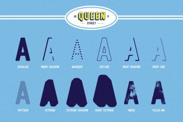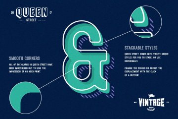 Queen Street 显示字体是来自 Vintage Type Co. 的最新复古风格显示字体系列!